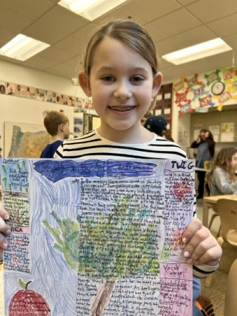 Our Book-Art reports (called One-Pagers) have given the Sea Lions a creative way to show what they know about their novels through both writing and art. These projects have truly been a labor of love and have stretched students to use important executive function skills such as planning, focus, memory, and organization.